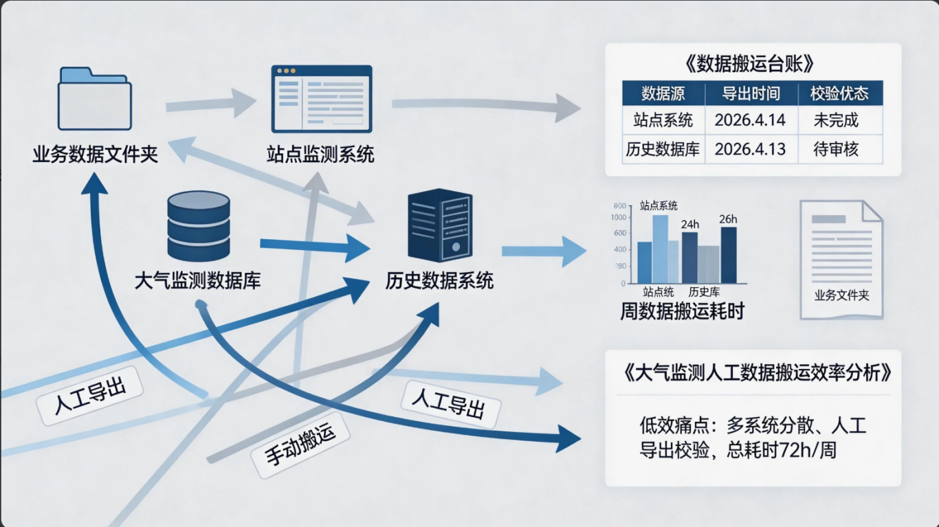 “我们最专业的能力是分析污染成因、提出治理方案,但现实中,大量时间却被数据整理消耗了。”一位项目负责人这样形容。